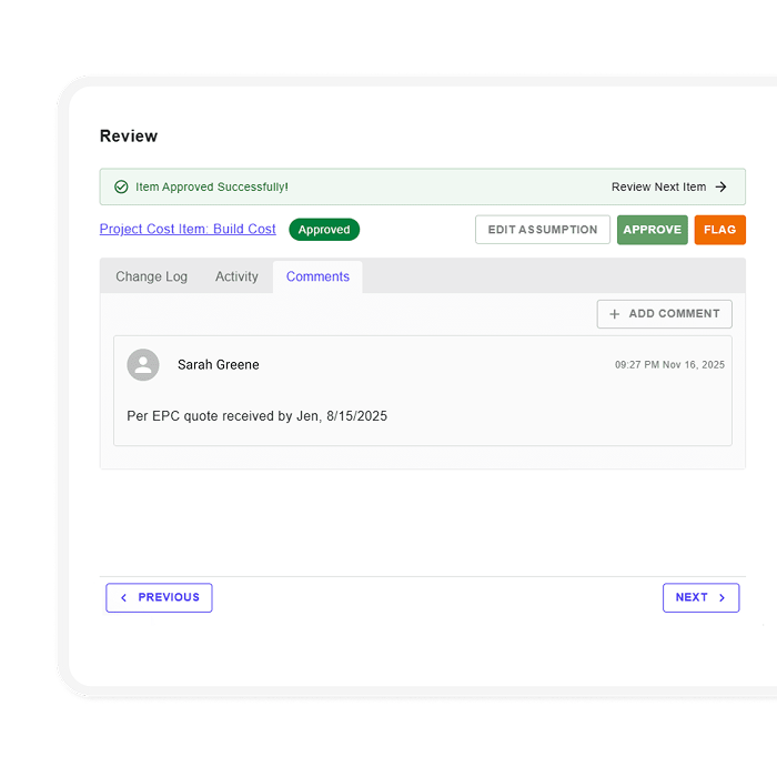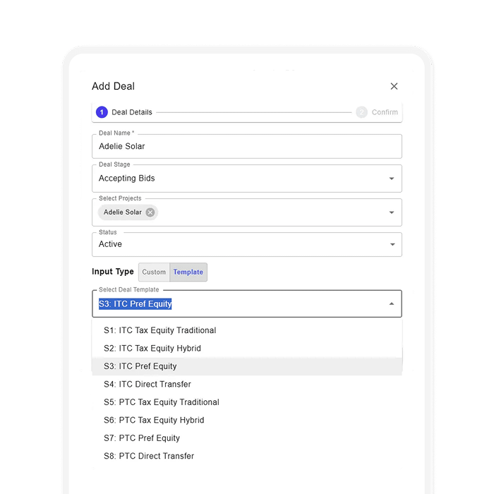 Purpose-built for clean energy, our platform is used by cross-functional teams (i.e. development, origination, underwriting, M&A, and finance).