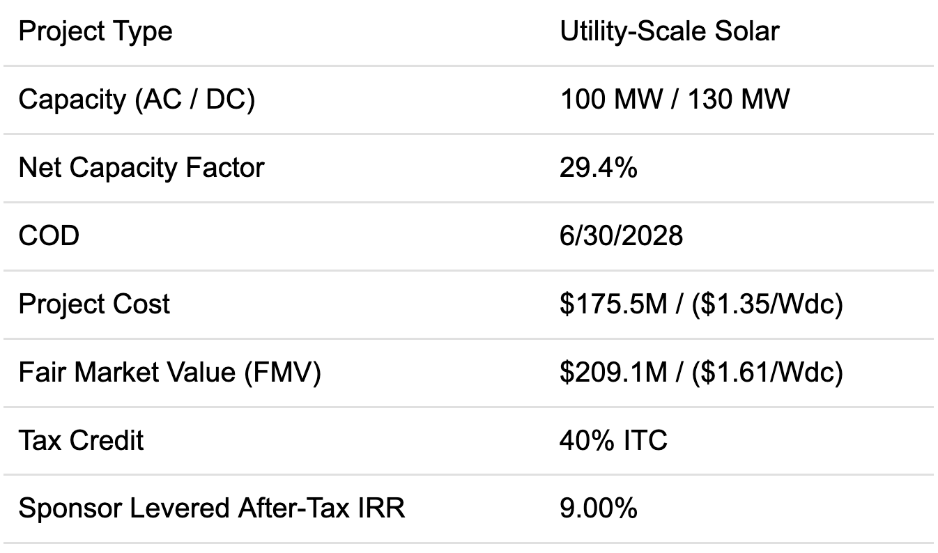 Consider the economics of a sample solar project: